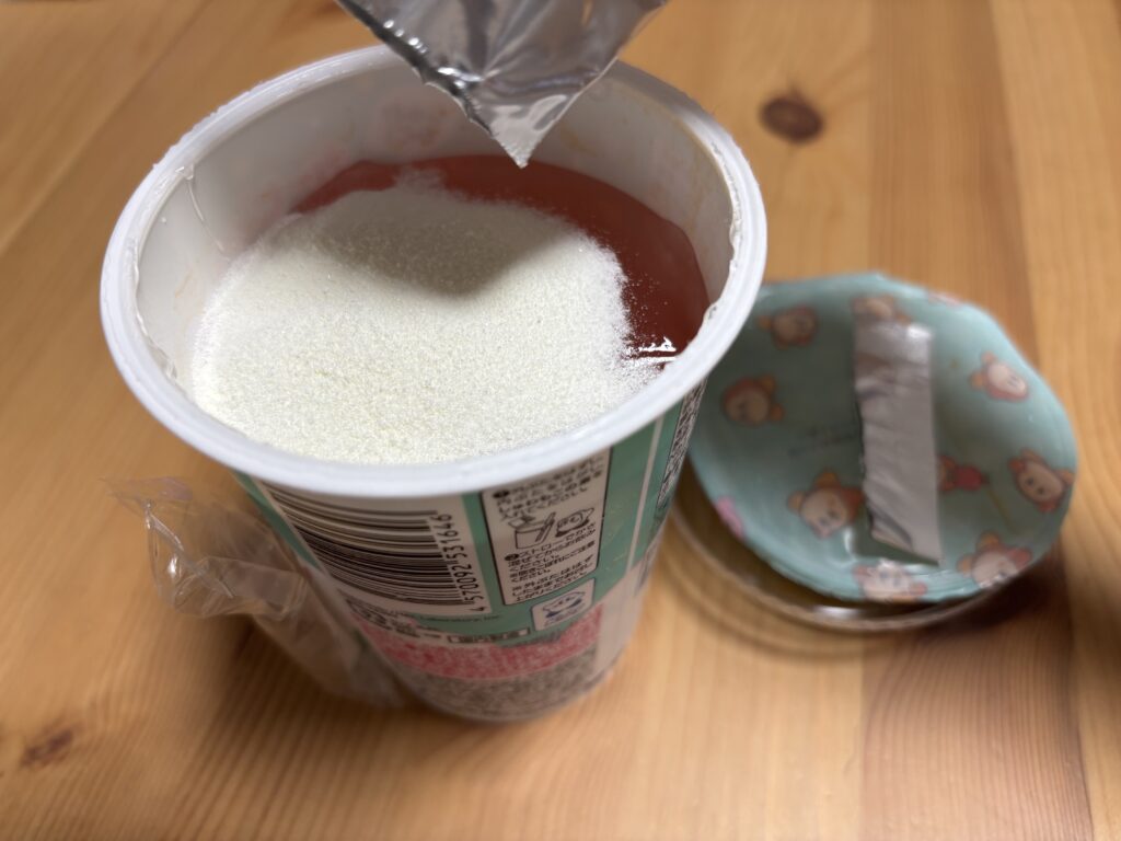 中のゼリードリンクに付属の粉を入れてストローで混ぜると…もこもこの泡が発生!🫧